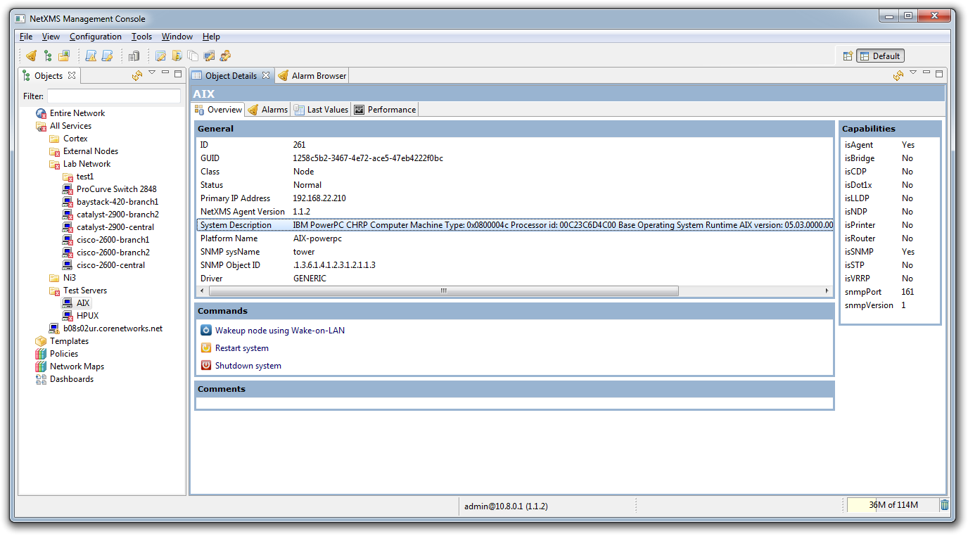 Признаюсь честно, про NetXMS я узнал за несколько часов до создания этой странички. Тем не менее, судя по заявленному функционалу, система заслуживает пристального внимания. Что ещё понравилось, так это вариативность выбора серверной платформы (windows или debian) и платформы для установки панели управления (вдобавок к веб-интерфейсу).