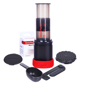 Мой первый AeroPress. Он просто офигенский! Особенно радует качество, кружка очень приятная, а то, что они придумали, как силиконовую крышку можно использовать ещё и как нескользящую подставку… В общем отличная модель для поездок.